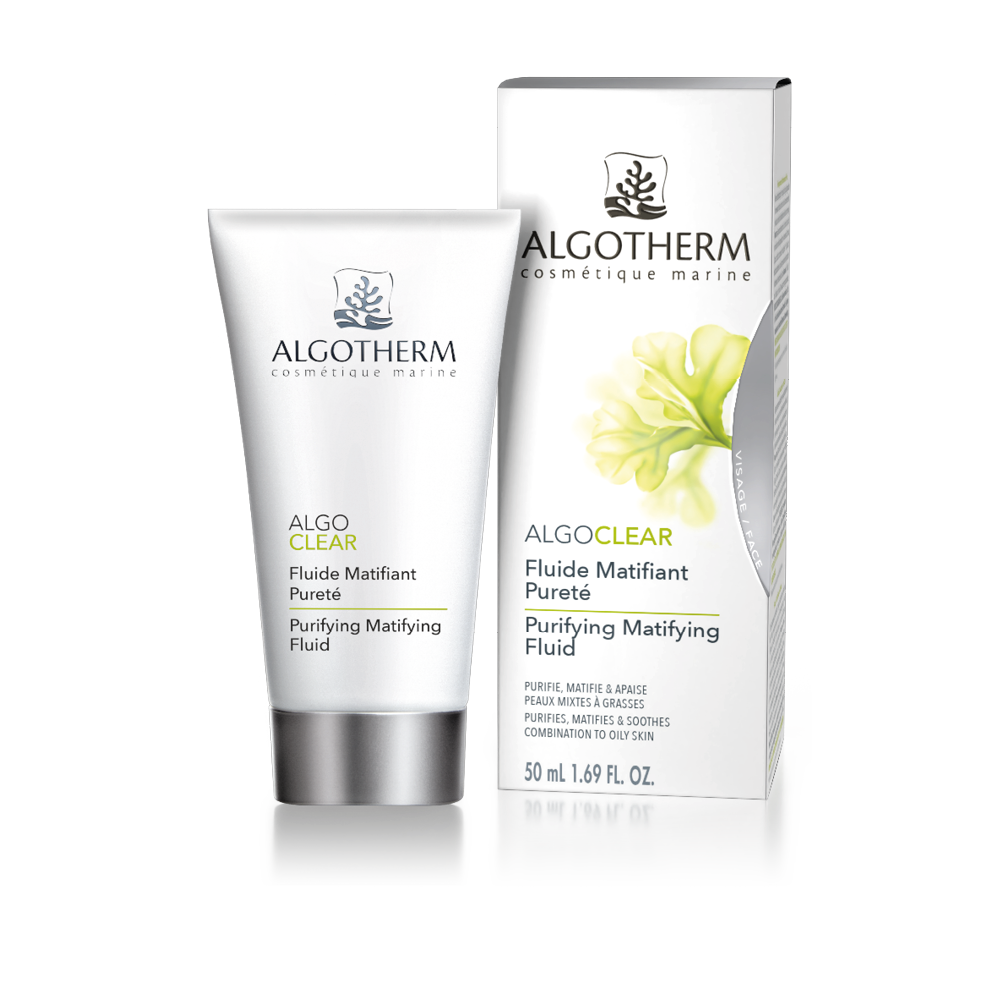 Complexe Algoclear, Chondrus crispus, zinc PCA, poudres matifiantes, concentré d’eau de mer, alpha-bisabolol, D-panthénol, vitamine E